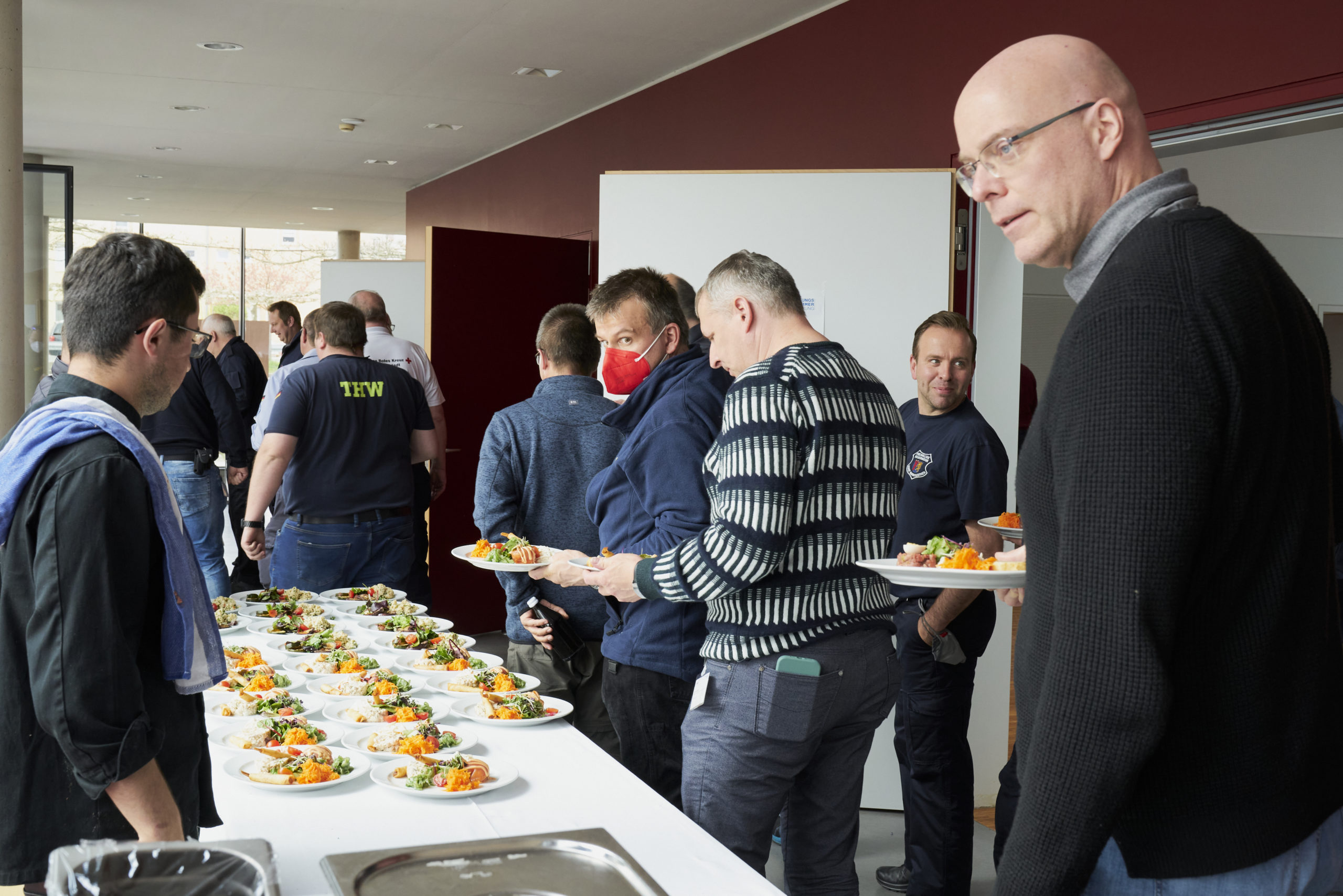 Im wunderschönen Mittelfranken fand die kostenlose Fachtagung FUNKE 2022 im Bürgersaal in Markt Heroldsberg statt, die sich an Führungsunterstützungskräfte im Katastrophenschutz richtete. Thematisiert wurde im Rahmen der Veranstaltung die verheerende Hochwasserkatastrophe im Sommer 2021 in Deutschland. Bereits vor dem offiziellen Registrierungsbeginn um 9 Uhr standen die ersten Gäste der ersten Präsenzveranstaltung der Versicherungskammer Stiftung nach zwei Jahren Corona-Pause vor der Tür. Die Teilnehmenden konnten sich vor dem inhaltlichen Programm bei einem Frühstück stärken und austauschen.