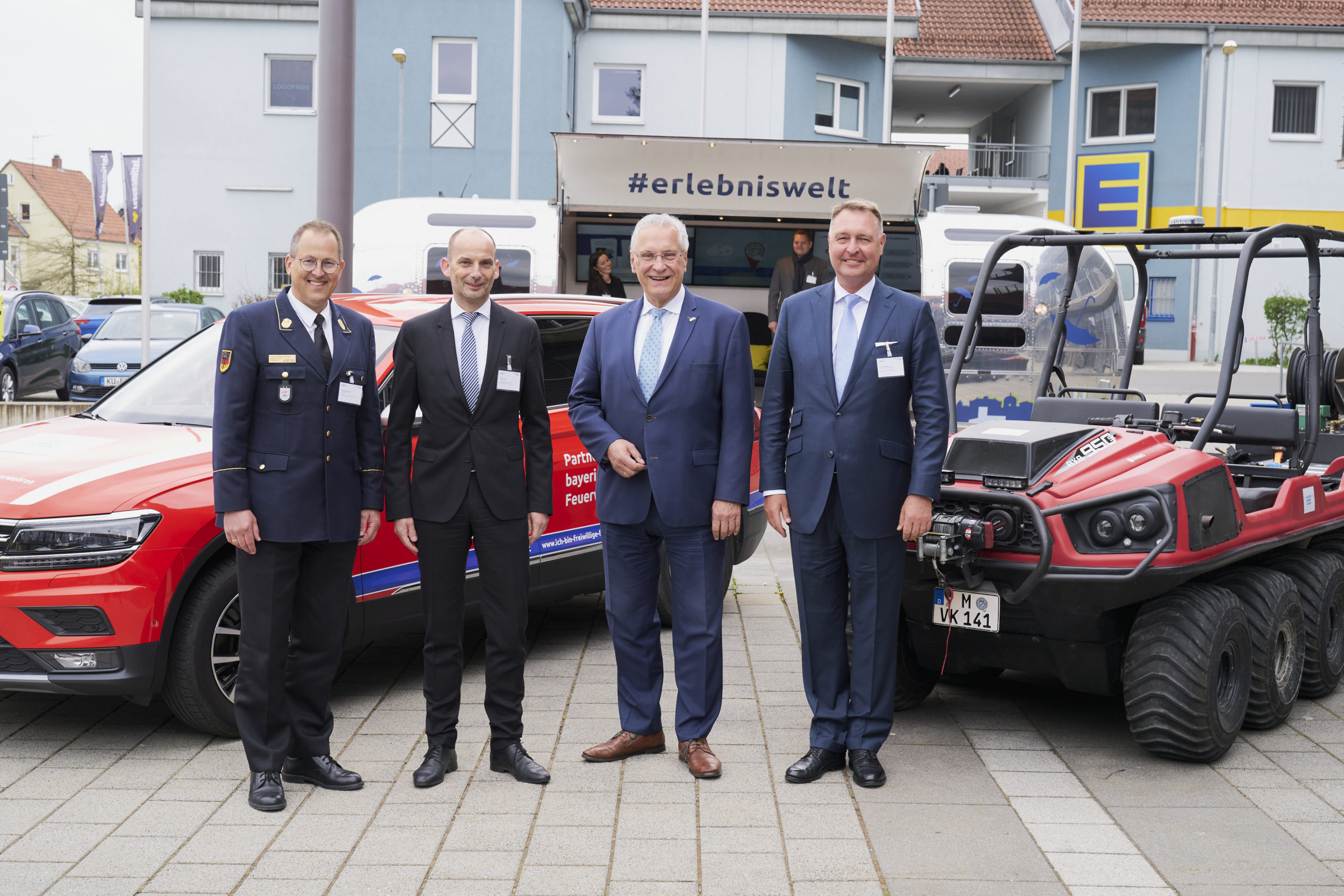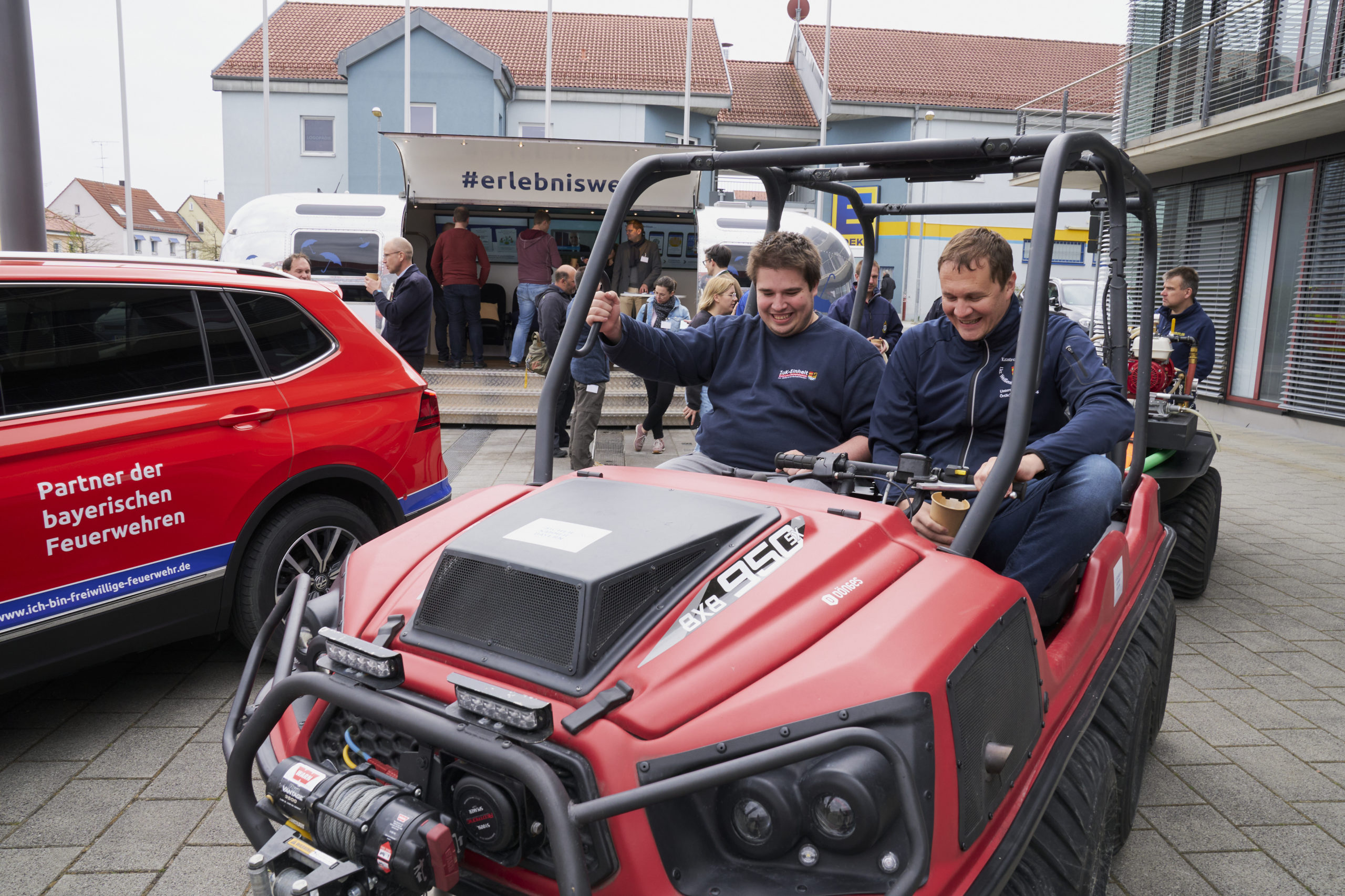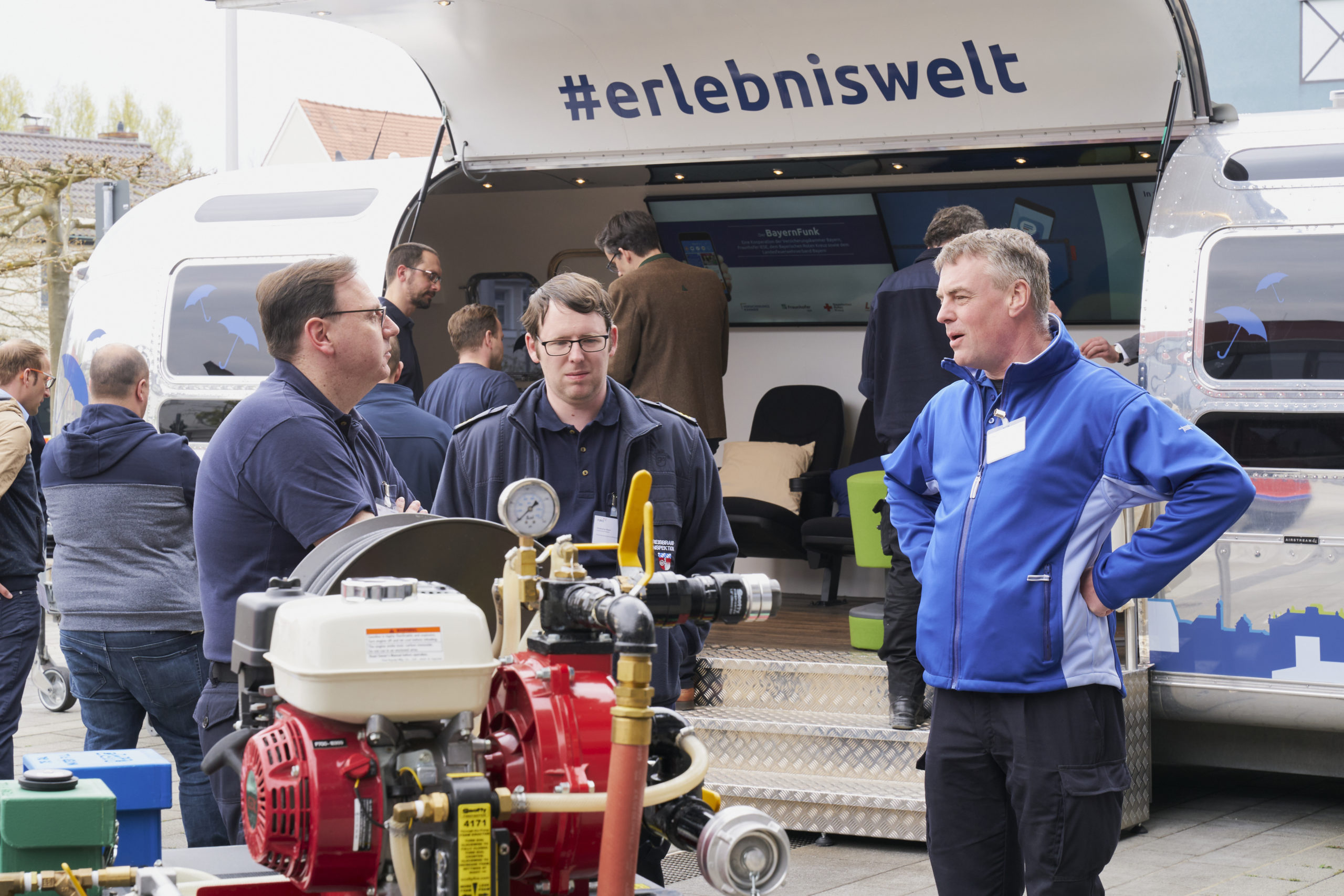 Moderatorin Isabel Stier führte durch den Tag: Zunächst begrüßte sie die Gäste gemeinsam mit Christian Krams, Mitglied im Vorstand des Konzerns Versicherungskammer und Pate für das Feuerwehr-Engagement. Er schilderte wie Schadensmanagement in herausfordernden Zeiten funktioniert, bevor er aufzeigte, wie die Versicherungskammer Bayern die Feuerwehren im Einsatz und bei der Brandschutzerziehung und -aufklärung unterstützt. Beispielsweise wurde im vergangenen Jahr in Folge der Hochwasserkatastrophe ein Amphibienfahrzeug für die Feuerwehren im Freistaat angeschafft, das aktuell bayernweit von Feuerwehren getestet wird. Das Amphibienfahrzeug konnte in einer Außen-Ausstellung angesehen werden. Aufgestellt war dort auch ein Airstream, in dem über die Initiative BayernFunk der Versicherungskammer Bayern, Fraunhofer IESE, dem Bayerischen Roten Kreuz sowie dem Landesfeuerwehrverband Bayern informiert wurde. Die datensichere Social-Media-Plattform steht exklusiv für bayerische Gemeinden und Landkreise zur Verfügung. Damit können sich Bürger:innen, Kommunen, Vereine, Feuerwehren und andere ehrenamtlich Engagierte austauschen. Sie können gebündelte Informationen zu Nachbarschaftshilfe, Vereinsleben und Veranstaltungen in einer zentralen Plattform kommunizieren und koordinieren. Das fördert das Miteinander und stärkt die örtliche Gemeinschaft.